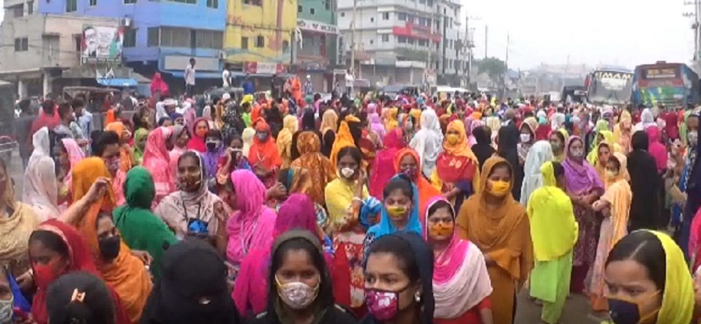 গাজীপুরে বন্ধ কারখানা খুলে দিয়ে চাকরিতে পুনর্বহালের দাবিতে কারখানার সামনে অবস্থান নিয়ে বিক্ষোভ করে তৈরী পোশাক শ্রমিকরা। সকাল ৭টা থেকে গাজীপুরের তারগাছ এলাকায় ঢাকা-ময়মনসিংহ মহাসড়কের দুপাশে অবরোধ করে বিক্ষোভ করলে শিল্পপুলিশ বাধা দিয়ে মহাসড়ক থেকে সরিয়ে দেয় শ্রমিকদের।