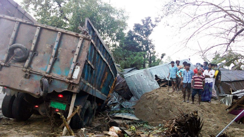 বগুড়ার নন্দীগ্রামে বালুবোঝাই ট্রাক নিয়ন্ত্রণ হারিয়ে মহাসড়ক সংলগ্ন ঘরে ঢুকে কেড়ে নিয়েছে মা-মেয়ের প্রাণ। শনিবার ভোরে নন্দীগ্রাম উপজেলার ওমরপুরে এই দুর্ঘটনা ঘটে। নিহতরা হলেন ওমরপুর সড়কপাড়া এলাকার বাসিন্দা অতেজান বিবি ও তার মেয়ে কাতুলী খাতুন। দিনমজুর পরিবারটি দীর্ঘদিন ধরে মহাসড়ক সংলগ্ন সড়ক ও জনপথের জায়গায় কুঁড়েঘর বানিয়ে বসবাস করে আসছিলো।