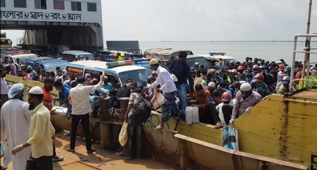 আজও ঢাকামুখী মানুষের স্রোত। দেশের দুই প্রধান ফেরি ঘাট শিমুলিয়া-কাঁঠালবাড়ি ও পাটুরিয়া-দৌলতদিয়ায় সকাল থেকেই ছিল মানুষের ভিড়।