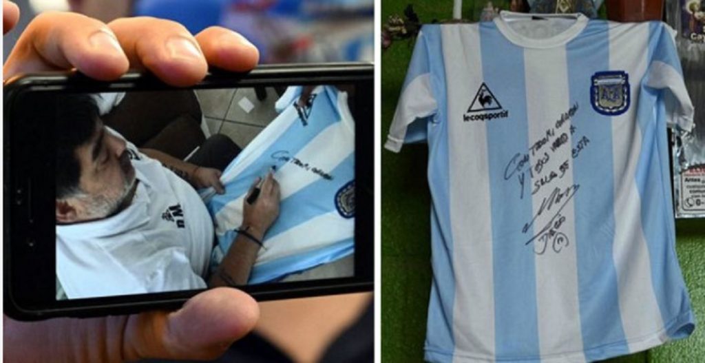 ১৯৮৬ বিশ্বকাপ জয়ের স্মারকটিতে থাকছে ম্যারাডোনার অটোগ্রাফও। প্রথমে নিলামের কথা ভাবলেও শেষ পর্যন্ত জার্সিটি দেয়া হবে লটারির মাধ্যমে। আর জার্সি জিততে হলে আগ্রহীদের স্বাস্থ্যকর পণ্য, মাস্ক এবং ১০০ কেজি খাদ্যপণ্য কেনার টাকা দিতে হবে।
