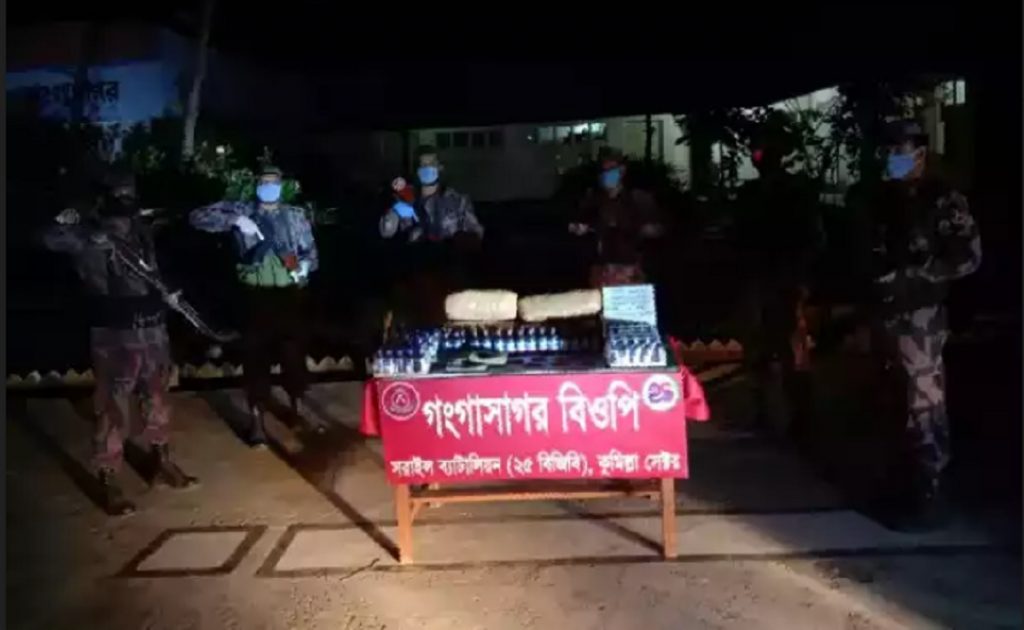 বিজিবি সূত্র জানায়, উপজেলার সীমান্তঘেষা কুড়িপাইকা গ্রামের চিহিৃত শীর্ষ মাদক ব্যবসায়ী কাপ্তানের বাড়িতে ইয়াবা ট্যাবলেটসহ বিভিন্ন মাদকের চালান প্রবেশ করেছে এমন গোপন সংবাদের ভিত্তিতে সীমান্তবর্তী ফকিরমুড়া বিজিবি ক্যাম্পের জওয়ানদের সঙ্গে নিয়ে গঙ্গাসাগর ২৫ বিজিবি ক্যাম্পের ক্যাম্প কমান্ডার রবিউল ইসলাম শনিবার ইফতারের আগ মুহূর্তে অভিযান চালায়। এসময় কাপ্তান ও তার ভাইদের বিভিন্ন ঘর তল্লাশি চালিয়ে মাদকের বস্তার সঙ্গে রক্ষিত নগদ ৩ লাখ ৪২ হাজার ১৮০ টাকা, ১ হাজার ৩০৫ পিস ইয়াবা, ১২১ বোতল ফেন্সিডিল, ৮ কেজি গাঁজা ও ৪০ বোতল স্কফ উদ্ধার করা হয়।