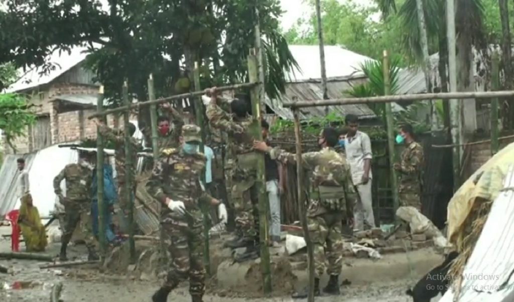 সুপার সাইক্লোন আম্পানের প্রভাবে নীলফামারীর উপর দিয়ে বয়ে যাওয়া দমকা বাতাসে এক অসহায় বৃদ্ধার বিধ্বস্ত ঘর নির্মাণ করে দিয়েছে সেনা সদস্যরা। গত শুক্রবার ও আজ শনিবার বৃদ্ধা মরিয়ম বেগমের মাথা গোঁজার একমাত্র ঠাই ঘরটি নির্মাণ করে দেন রংপুরের খোলাহাটী সেনানিবাসের সদস্যরা।