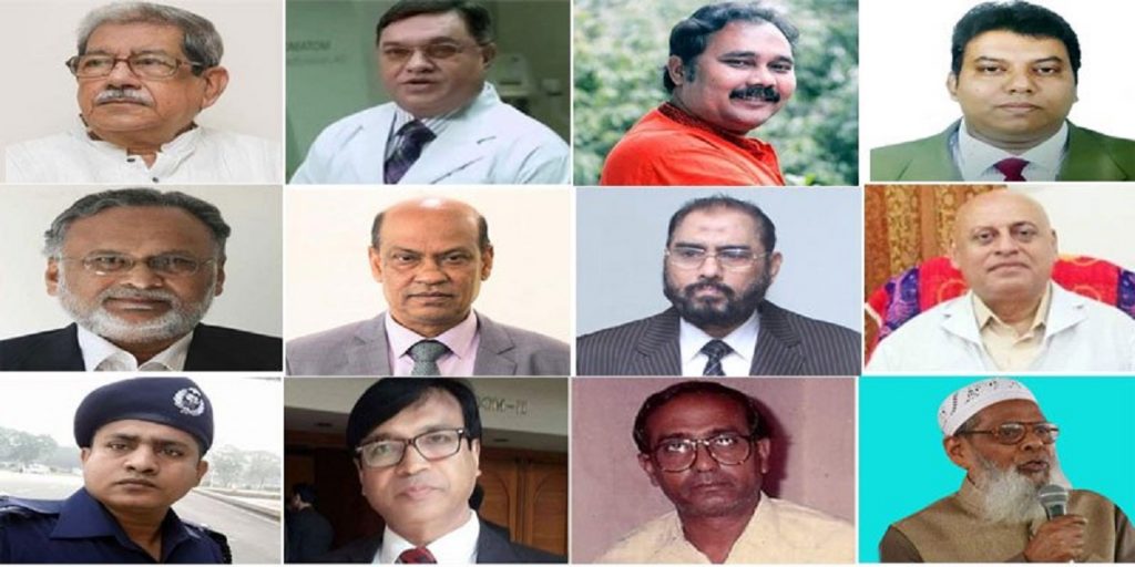 এই মৃত্যুর তালিকায় রয়েছে শিক্ষাবিদ, সাংবাদিক, রাজনীতিবিদ, চিকিৎসক, পুলিশ, সেনাসদস্য, ব্যবসায়ী, আমলা, ব্যাংক কর্মকর্তা, দুদক কর্মকর্তা, সাংস্কৃতিক অঙ্গনের ব্যক্তিত্বরা।
