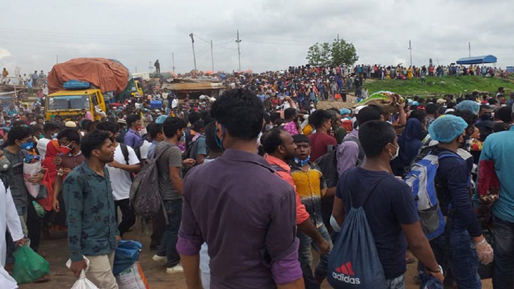 পরিবারের সদস্যদের সঙ্গে ঈদ কাটিয়ে করোনাভাইরাস সংক্রমণের ঝুঁকি নিয়েই কর্মস্থলে ফিরছেন রাজধানীর কর্মজীবী মানুষ।