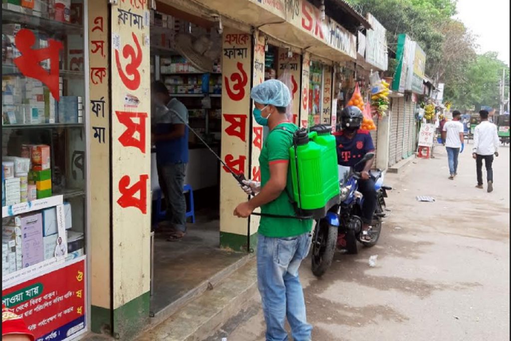 করোনাভাইরাসের প্রাদুর্ভাব দেখা দেয়ার পর থেকেই শহরের হাসপাতাল, ক্লিনিক, মসজিদ-মন্দির, সরকারি-বেসরকারি অফিসে জীবাণুনাশক ছিটিয়ে যাচ্ছেন বেসরকারি বিশ্ববিদ্যালয় থেকে বিবিএ সম্পন্ন করা