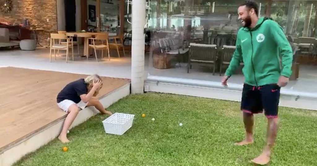 ভিডিওতে দেখা যায়, বাগানে ছেলেকে নিয়ে খেলতে ছিলেন নেইমার। এ সময় বল হেড করতে ছেলে কতটুকু দক্ষ হলো সেটা দেখতে বসে থাকা ছেলের মাথার দিকে লক্ষ্য করে একের পর এক পিংপং বল ছুঁড়ছিলেন। ছেলেও পিংপং বলগুলো হেড করে পাশে থাকা একটা ঝুড়িতে ফেলার চেষ্টা করছিল। কখনও সফল হচ্ছিল। কখনও ব্যর্থ।