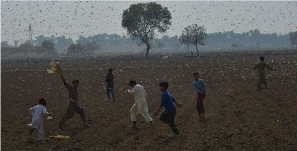যখন পঙ্গপালের হানায় মাথায় হাত কৃষকদের। ভারত ও পাকিস্তানে খাদ্য নিরাপত্তা সঙ্কটের আশঙ্কা। তখনই পাকিস্তানে ঝাঁকে ঝাঁকে পঙ্গপাল ধরে বিক্রি করছে কৃষকরা। প্রতি কেজি পঙ্গপাল ২০ রুপিতে বিক্রি করছে পাঞ্জাবের ওকারা জেলার কৃষকেরা। খবর স্ক্রোল.ইন।