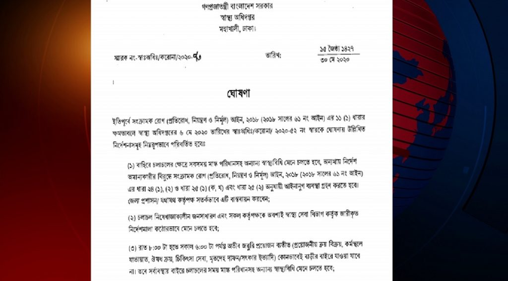 এদিকে বিজ্ঞপ্তিতে আরও বলা হয়েছে, রাত ৮টা থেকে ভোর ৬টা পর্যন্ত অতীব জরুরি প্রয়োজন ছাড়া বাইরে বের হওয়া যাবে না।
