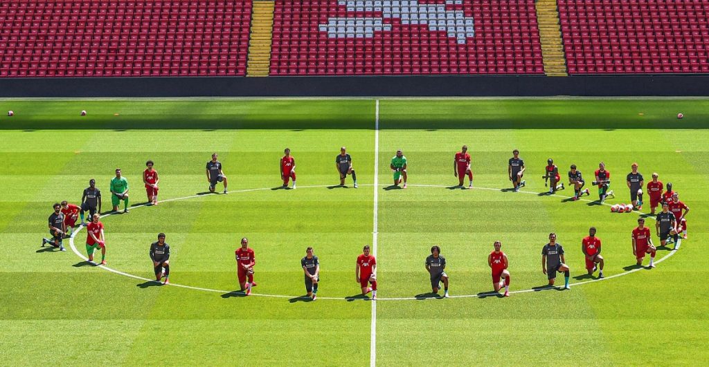 জর্জ ফ্লয়েড পুলিশের হাটুর চাপে যেভাবে প্রাণ হারায়, সেই ভঙ্গি করে সোমবার অনুশীলনে অভিনব প্রতিবাদ জানিয়েছেন লিভারপুলের সব ফুটবলাররা। তবে অন্য সবার চেয়ে কৃষ্ণাঙ্গ ফুটবলারদের ক্ষোভ একটু বেশি প্রকাশিত হয়েছে।