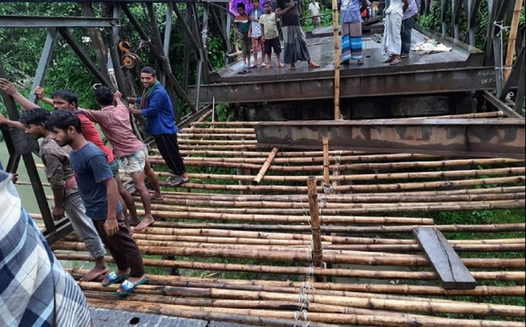 বৃহস্পতিবার লোহার পাত বোঝাই ভারি যানবাহন যাওয়ায় ঝুঁকিপূর্ণ সাজনপুর বেইলি সেতুর একটি অংশ ভেঙ্গে পড়ে। এরপর থেকেই সড়ক ও জনপথ বিভাগ শ্রমিক কাজ চালিয়ে যাচ্ছে। তবে দুর্যোগপূর্ণ আবহাওয়ার কারণে মেরামত কাজ ব্যাহত হচ্ছে। সড়কটি বন্ধ থাকায় যানজটের সৃষ্টি হয়েছে। ডামুড্যা হয়ে বিকল্প সড়ক ব্যবহারের জন্য চালকদের পরামর্শ দেয়া হয়েছে।