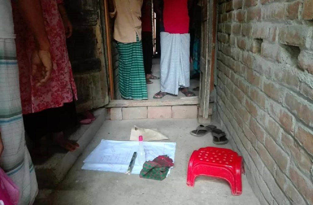 সকালে বাড়ির লোকজন ঘুম থেকে উঠে দরজার সামনে এসব দেখতে পেয়ে এলাকার ইউপি সদস্য রেজাউল করিম নান্টুকে খবর দেন।