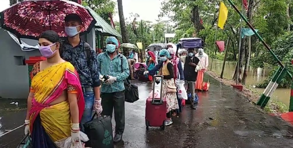 ভারতে লকডাউন থাকার কারণে দীর্ঘ তিন মাসেরও বেশি সময় বাংলাদেশে আটকে থাকা শতাধিক ভারতীয় নাগরিক প্রচণ্ড বৃষ্টি মাথায় নিয়ে ব্রাহ্মণবাড়িয়ার আখাউড়া আন্তর্জাতিক ইমিগ্রেশন চেকপোস্ট দিয়ে নিজ দেশ ফিরেছেন।