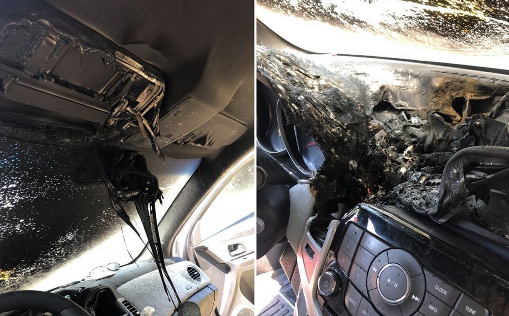 জানা যায়, এক গাড়ির মালিক উইন্ডশীল্ডে হ্যান্ড স্যানিটাইজার রেখেছিলেন। পরে সুর্যের প্রচণ্ড তাপে হ্যান্ড স্যানিটাইজার থেকে আগুন ধরে যায় গাড়িতে। এতে গাড়ির সামনের অংশ আগুনে পুড়ে যায়।