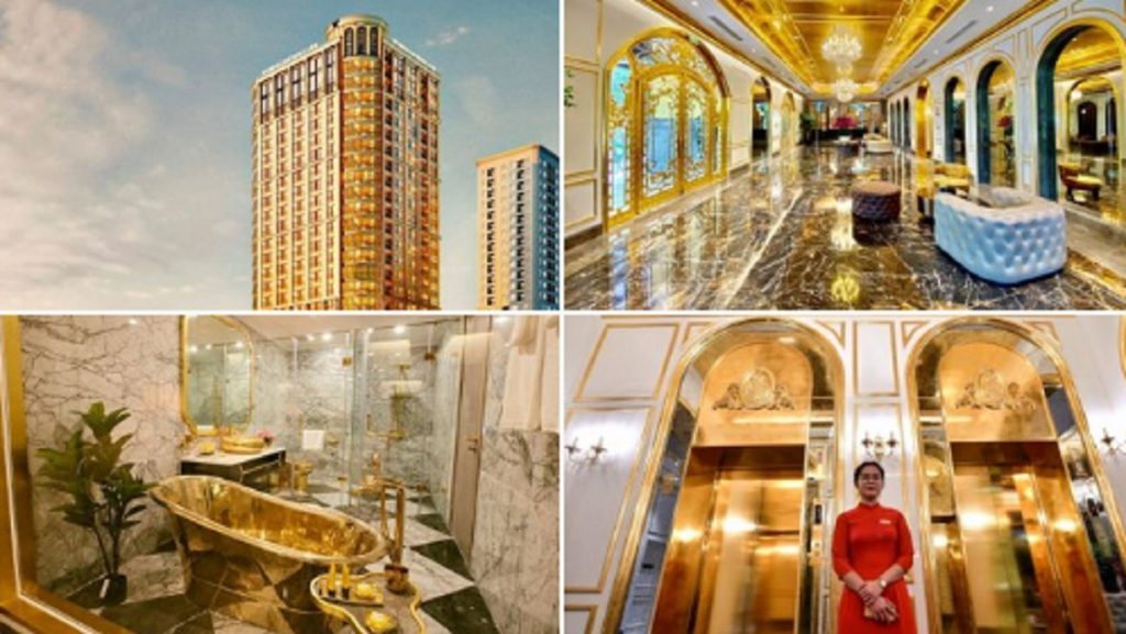 ভিয়েতনামের রাজধানী হানোইতে তৈরি হয়েছে গোল্ড প্লেটেড হোটেল ‘ডলস হানোই গোল্ডেন লেক’।২০০৯ সালে নির্মাণ শুরু হয়েছিল এই হোটেলের। হোটেলটি তৈরিতে খরচ হয়েছে ২০০ মিলিয়ন মার্কিন ডলার। এমনকি হোটেলের ইন্টিরিয়ার এবং এক্সটিরিয়ার দুই ক্ষেত্রেই ব্যবহৃত হয়েছে ২৪ ক্যারেট সোনা।