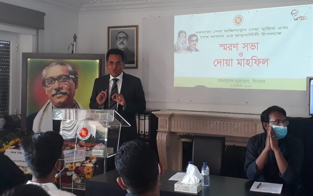 অনুষ্ঠানের সভাপতি ও বাংলাদেশ দূতাবাস লিসবনের রাষ্ট্রদূত রুহুল আলম সিদ্দিকী বলেন, এই শোক আমাদের সকলের, কারণ এই আগস্ট মাসে বঙ্গমাতাকে পেয়েছিলাম আবার এই মাসেই হারাতে হয়েছে। আমরা বিভিন্ন দূতাবাস পররাস্ট্র মন্ত্রণালয়ের মাধ্যমে যারা বঙ্গবন্ধু এবং তার পরিবারকে হত্যা করেছিল তাদেরকে দেশে ফেরানোর জন্য কাজ করে যাচ্ছি।