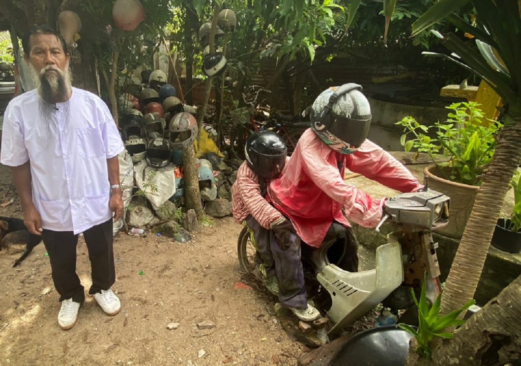 থাইল্যান্ডের রোডগুলো বিশ্বের সবচেয়ে বিপজ্জনক। সড়ক দুর্ঘটনা এখানে নিত্যনৈমিত্তিক ব্যাপার। প্রতি বছর এভাবে ২০ হাজার মানুষ নিহত হন। এর এক-তৃতীয়াংশই মোটরবাইক বা থ্রি-হুইলার চালক। সড়ক দুর্ঘটনা নিশ্চিতভাবেই অত্যন্ত বেদনার। বিষয়টি গভীরভাবে ব্যথিত করে থাই নাগরিক সোম্পং চানরাকসাকে। দুর্ঘটনা রোধে একটু ভিন্নভাবে কাজ শুরু করলেন তিনি। যেখানেই সড়ক দুর্ঘটনা সেখানেই ছুটে যান। সংগ্রহ করেন চালকের হেলমেট। এভাবে প্রায় ৫০ বছর ধরে সংগৃহীত সেই হেলমেট দিয়েই একটি ‘বাগান’ গড়ে তুলেছেন তিনি। তার বাগানে প্রবেশপথেই একটা মোটরবাইক চোখে পড়ে। সামনে বসা বড় একজন, পেছনে তাকে আকড়ে ধরে রয়েছে ছোট একটা বাচ্চা। মুহূর্তেই বুঝতে পারবেন এ দু’জন আসলে ম্যানিকুইন। মানবের আদলে গড়া এই দুই পুতুল এমনভাবে সাজানো হয়েছে একদম সত্যি মনে হবে। এই বাইকের পেছনেই আরও অনেক হেলমেট। খুঁটি পুঁতে পুঁতে তার ওপর সাজিয়ে রাখা হয়েছে। এগুলোই যেন তার বাগানের ফুল। বাগানটির সঙ্গে বহু হতভাগা মানুষের স্মৃতিবিজড়িত। হেলমেটগুলো যারা ব্যবহার করতেন তাদের গল্পগুলোই যেন শোনায় এই বাগান।