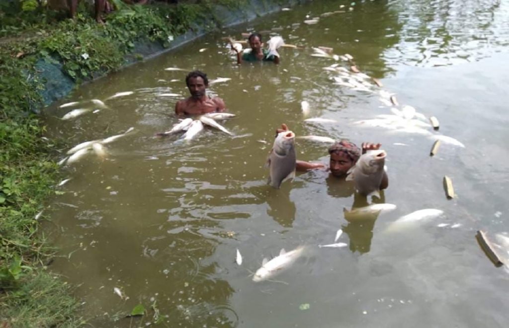 নাটোরের গুরুদাসপুরে একটি ৩ বিঘার পুকুরে বিষ প্রয়োগ করে প্রায় ৬ লাখ টাকার মাছ নিধনের অভিযোগ পাওয়া গেছে। বুধবার গভীর রাতে উপজেলার চাপিলা ইউনিয়নের নওপাড়া গ্রামে এই ঘটনা ঘটে।