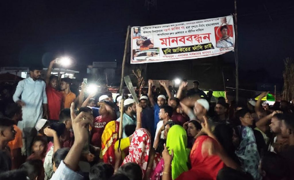 মানববন্ধনে বক্তব্য রাখেন, নন্দনপুর গ্রামের বাসিন্দা জাকির হোসেন, মো. সালাউদ্দিন ও মিনারা বেগম প্রমুখ। এ সময় বক্তারা বলেন, তুচ্ছ ঘটনায় পরিকল্পিতভাবে তারেককে হত্যা করেছে জাকির ও তার সহযোগীরা। এ ঘটনায় থানায় মামলা নিয়ে গেলে পুলিশ মামলা নিতে অপারগতা প্রকাশ করে। তাই মামলা নেওয়ার পাশাপাশি অভিযুক্তদের দ্রুত গ্রেফতার করে দৃষ্টান্তমূলক শাস্তির দাবি জানান বিক্ষুব্ধরা।