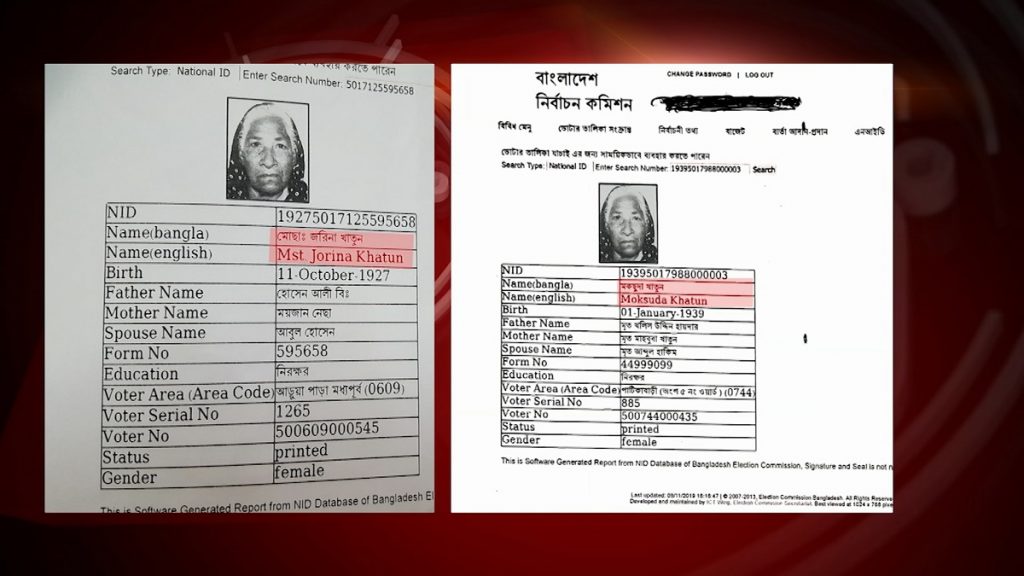 মোকসুদার জাতীয় পরিচয়পত্র অনুসন্ধান করে জানা যায়, জমি বিক্রি হওয়ার সময় দলিলে যে পরিচয়পত্র ব্যবহার করা হয়েছে তা মোকসুদা নামের আরেকটি পরিচয়পত্র। নির্বাচন কমিশনের সার্ভারে দেখা যায়, দুটি জাতীয় পরিচয়পত্রের তথ্যই সার্ভারে আছে। তাহলে, দুটি আসল হয় কীভাবে?