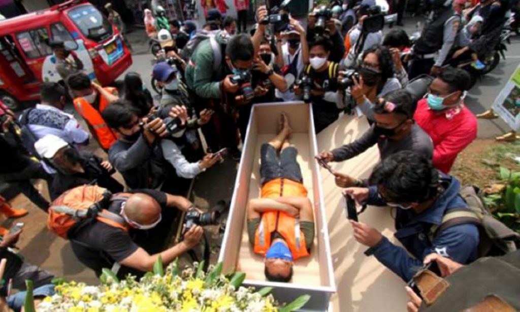 বিবিসি জানিয়েছে, মাস্কের প্রতি মানুষের অনীহার এ সমস্যা নিরসনে জাকার্তার পূর্বাঞ্চলীয় কালিসারি এলাকার কর্তৃপক্ষ কফিনে শোয়ানোর অভিনব কৌশলটি নিয়েছে।