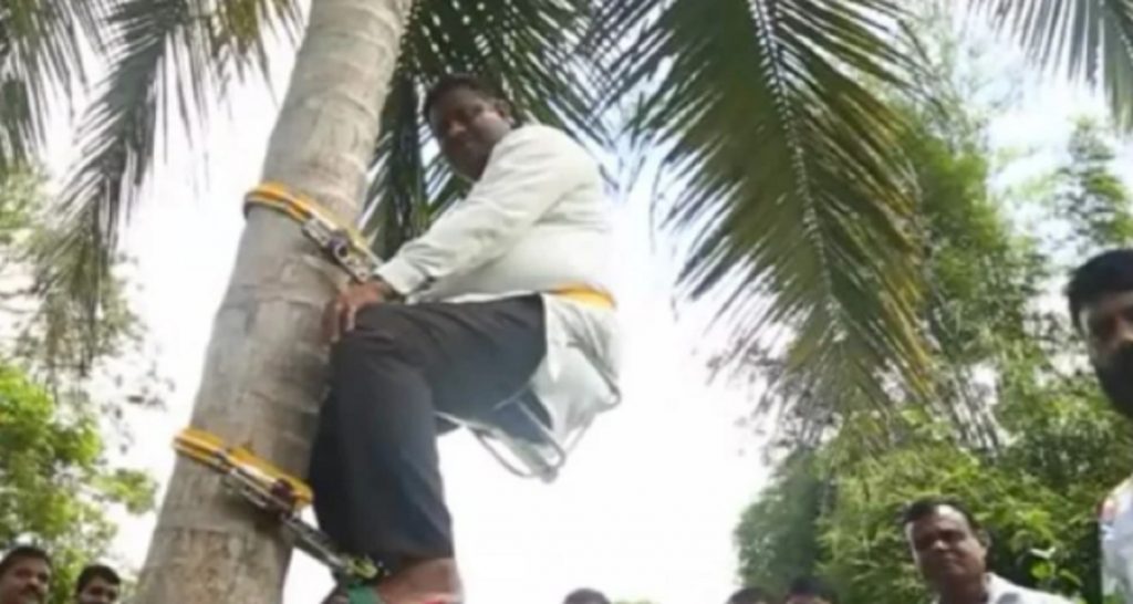 দেশে নারকেলের ফলন কম। আর এই বিষয়টিই জনগণকে বুঝাতে নারিকেল গাছে উঠে ভাষণ দিলেন শ্রীলঙ্কার নারকেল মন্ত্রী অরুণডিকা ফার্নান্দো।
