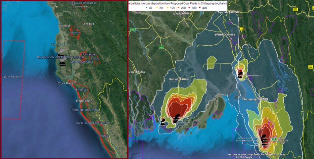 গবেষণায় বলা হয়েছে, প্রস্তাবিত বিদ্যুৎকেন্দ্রগুলো বাতাসে ১৬০০ কেজি পারদ এবং ৬০০০ টন ফ্লাই অ্যাশ নির্গমন করবে। এর মধ্যে বাতাসে ছড়িয়ে পড়া পারদের মধ্যে ৪০ শতাংশ মাটি ও স্বাদুপানির জলাশয়ে জমা হবে এতে খাদ্যে পারদের পরিমাণ বাড়বে। কারণ, কক্সবাজার অঞ্চল সামুদ্রিক মাছ, শুঁটকি এবং চিংড়ি চাষের জন্য বিখ্যাত। বিদ্যুৎকেন্দ্রগুলো থেকে বিষাক্ত পদার্থ নির্গমন হলে এখানকার মৎস্যশিল্প হুমকির মুখে পড়বে।