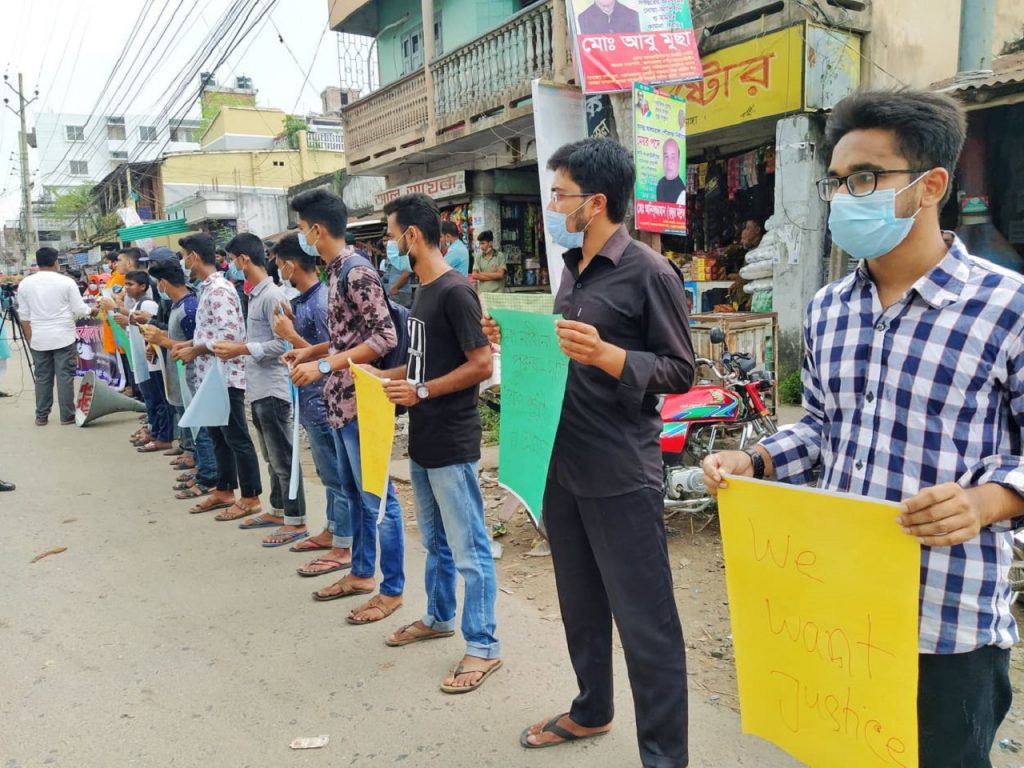 মানববন্ধনে জাহাঙ্গীরনগর বিশ্ববিদ্যালয়ের শিক্ষার্থী নাহিদ তমাল রোমান বলেন, দ্রুত বিচার কার্যকর করা হচ্ছে না বলেই যৌন হয়রানির মতো অপরাধগুলো বেড়েই চলেছে। কাজেই এসব ঘটনার দ্রুত বিচার কার্যকর করতে হবে।