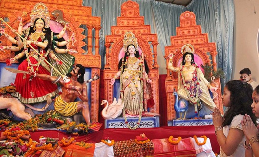 এবার দেবী এসেছেন দোলায়, যাবেন গজে চড়ে। যদিও করোনা মহামারির কারণে সংক্রমণ এড়াতে এ বছর সীমিত আকারে ধর্মীয় আচার-অনুষ্ঠান পালিত হচ্ছে।