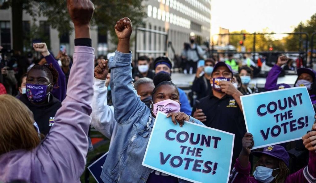 ব্রিটিশ সংবাদমাধ্যম বিবিসি জানিয়েছে, প্রতিটি ভোট গণনার দাবিতে আয়োজিত নিউইয়র্কের ম্যানহাটনে হাজারো মানুষের নির্বাচনি শোভাযাত্রা সহিংস হয়ে ওঠে।