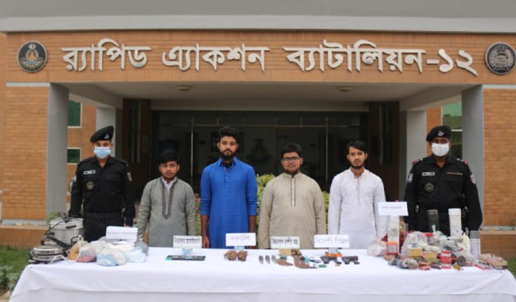 র্যাব আরও জানায়, সাম্প্রতিক সময়ে নাশকতার পরিকল্পনার উদ্দেশে শাহজাদপুরের উকিল পাড়ায় অস্থায়ীভাবে ১টি বাসা ভাড়া নেন এবং অস্ত্র সংগ্রহসহ বোমা তৈরির সরঞ্জামাদি ক্রয় করে বোমা তৈরি করার প্রক্রিয়া রপ্ত করার চেষ্টা করছিলেন। শুক্রবার দুপুরের দিকে তারা র্যাবের কাছে আত্মসমর্পণ করে। র্যাব ঘটনাস্থল থেকে ২টি বিদেশি পিস্তল, ২টি ম্যাগাজিন, ৪ রাউন্ড গুলি (ফায়ারকৃত কার্তুজ), দেশীয় অস্ত্রসহ বোমা তৈরির বিপুল পরিমাণ সরঞ্জামাদি উদ্ধার করে।