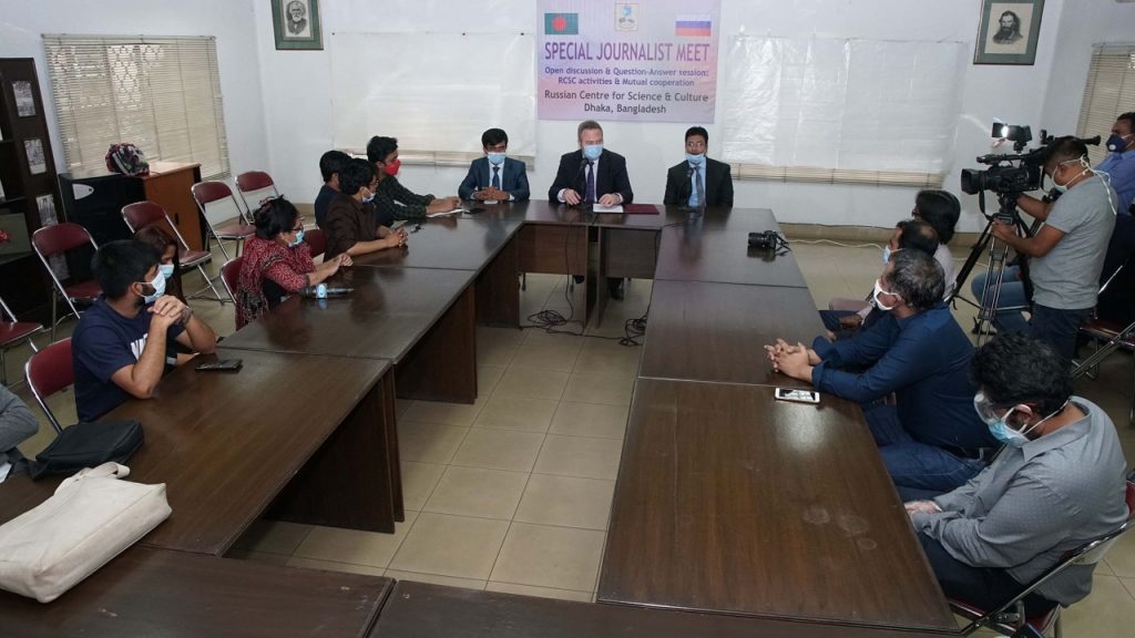 বাংলাদেশি গণমাধ্যমে কর্মরত প্রতিনিধিদের সাথে চলতি বছরের কার্যক্রম এবং ভবিষ্যতের পরিকল্পনা সম্পর্কে ঢাকাস্থ রুশ বিজ্ঞান ও সাংস্কৃতিক কেন্দ্রে একটি প্রেস সভা অনুষ্ঠিত হয়েছে। সভায় কেন্দ্রের পরিচালক ম্যাক্সিম দোব্রোখোতভ বিভিন্ন গণমাধ্যমের সাংবাদিকদের কথা বলেছেন।