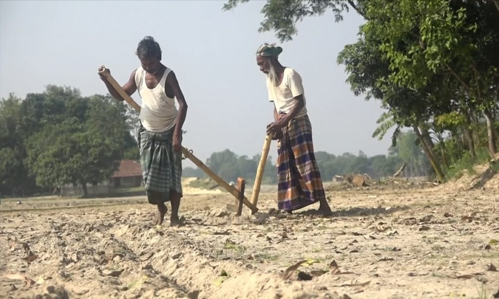 দুটো গরু কিনবেন, সে সামর্থ্য নেই। প্রবীণ মনির শারীরিক প্রতিবন্ধী ছেলে মকলেছকে নিয়ে তাই করছেন লাঙল টানার কাজ। এভাবেই গেলো কয়েক বছর হলো আবাদ করছেন দরিদ্র এই চাষি।