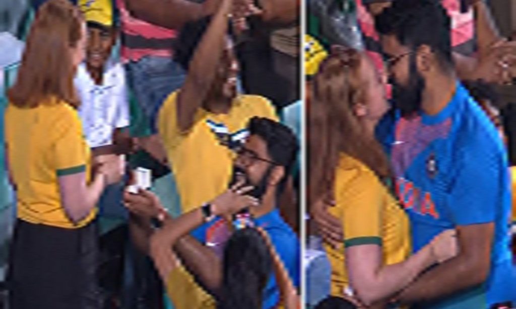 ম্যাচের ২০ তম ওভারে অনন্য এক দৃশ্য দেখলো ক্রিকেট বিশ্ব। এক ভারতীয় পুরুষ সমর্থক একজন অস্ট্রেলিয়ান নারীকে প্রোপজ করে বসলেন লাখো মানুষের সামনে।