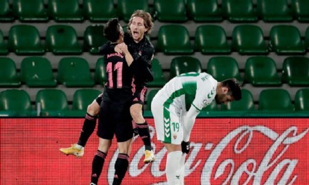 ২০ মিনিটে লুকা মডরিচের হেডে ব্যবধান বাড়ালেও সেটি ছিল বিফল। দ্বিতীয়ার্ধের শুরুতে স্পট কিকে দলকে সমতায় ফেরান ফিদেল। শেষ দিকে গোলরক্ষক কোর্তোয়ার নৈপুণ্যে হার এড়ায় রিয়াল মাদ্রিদ।