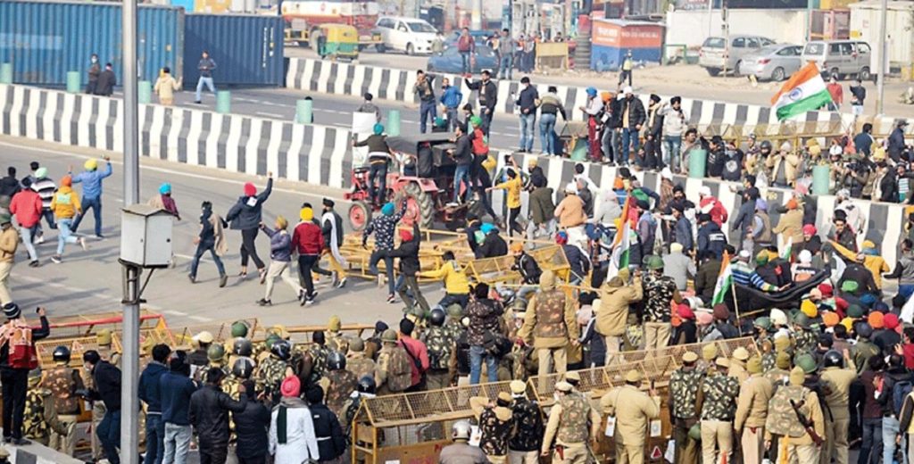 প্রজাতন্ত্র দিবসের কারণে কিষাণ গণতন্ত্র প্যারেড বা ট্রাক্টর র্যালির সময় বেধে দিয়েছিলো দিল্লি প্রশাসন। কিন্তু নীতিমালা উপেক্ষা করেই লালকেল্লায় ঢুকে পড়েন হাজারো কৃষক, চালায় কূটনৈতিক এলাকাগুলোয় নাশকতা। এ সময়, ক্ষুব্ধ কৃষকদের বাধা দিতে গেলে সহিংসতায় আহত হন কমপক্ষে ৮৬ পুলিশ সদস্য।