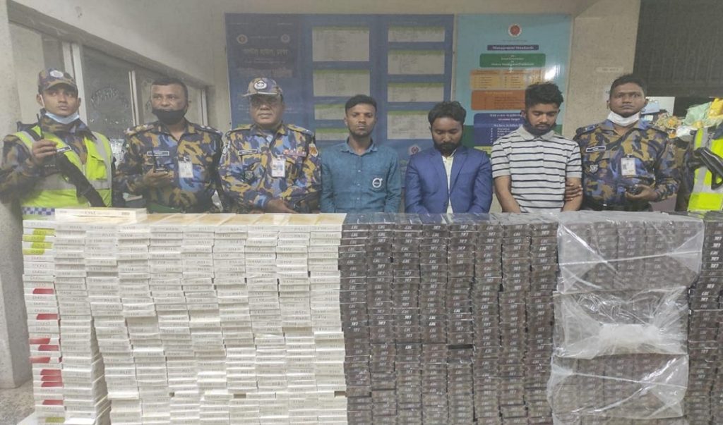 শাহজালাল আন্তর্জাতিক বিমানবন্দর থেকে ১ হাজার ৭০০ কার্টুন সিগারেট এবং ১৫৪ কেজি কসমেটিকসসহ ৩ জনকে আটক করেছে বিমানবন্দর এপিবিএন এবং কাস্টমস।