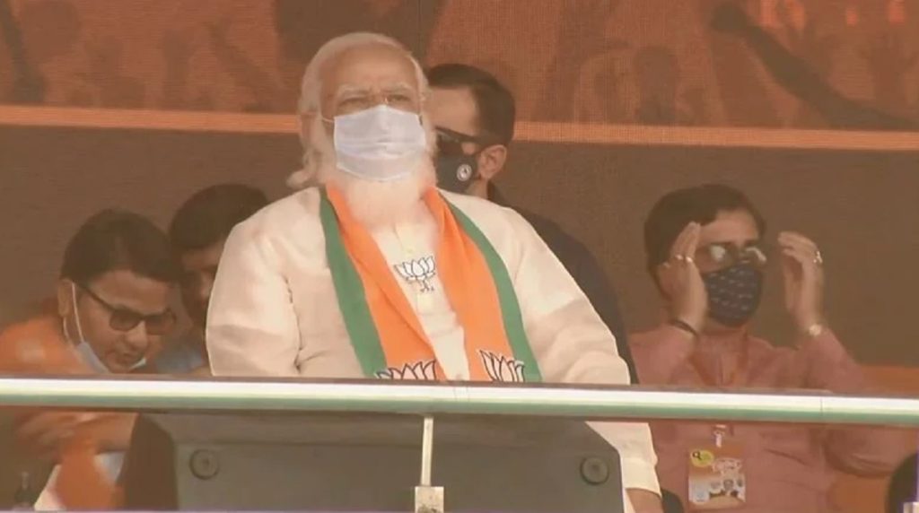 মোদি অভিযোগ করেন, পশ্চিমবঙ্গবাসীর বিশ্বাস নষ্ট করেছেন, মুখ্যমন্ত্রী মমতা ব্যানার্জি। তার ওপর ভরসা করে স্বপ্নভঙ্গ হয়েছে বাংলার মানুষের। বলেন, দুর্নীতির খেলা চলছে বাংলাজুড়ে। তিনি হুমকি দেন- যা লুটতরাজ চালানো হয়েছে; বিজেপি ক্ষমতায় এলে কড়ায়গণ্ডায় সেসবের হিসাব নেয়া হবে। এ সময় মোদি অনুপ্রবেশ প্রসঙ্গও টেনে আনেন। বলেন- যেকোনো মূল্যে অনুপ্রবেশকারীদের ঠেকানো হবে।