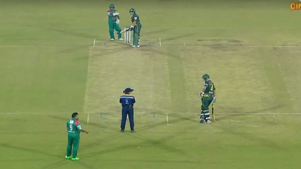 সন্ধ্যায় টস হেরে ব্যাট করতে নেমে বাংলাদেশকে ভালো শুরু এনে দেন মেহরাব হোসেন অপি-নাজিমউদ্দিন জুটি। ৩২ রানের ইনিংস খেলেন নাজিমউদ্দিন। পরে ২৪ বলে ৩ ছক্কায় ৩৯ রানের ঝড়ো ইনিংস আসে আফতাব আহমেদের ব্যাট থেকে। পরে হান্নান সরকারের ৩৬ আর খালেদ মাসুদ পাইলটের ১৯ রানে ভর করে ৯ উইকেটে ১৬০ রানের চ্যালেঞ্জিং পুঁজি পায় বাংলাদেশ।