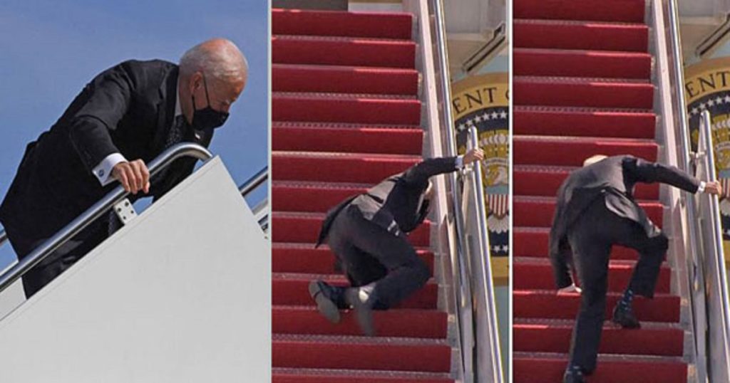 সিড়িতে কয়েকধাপ ওঠার পর প্রথম দফায় হোঁচট খান বাইডেন। এরপর নিজেকে সামলে নিয়ে সামনে এগুতে গিয়ে আরও দুইবার একইভাবে পড়ে যান। এরপর অবশ্য আর তেমন কিছু হয়নি। প্লেনের বাকি সিঁড়িগুলো ঠিকমতো পার হয়ে আত্মবিশ্বাসের সঙ্গে কর্মকর্তাদের স্যালুট দেন।