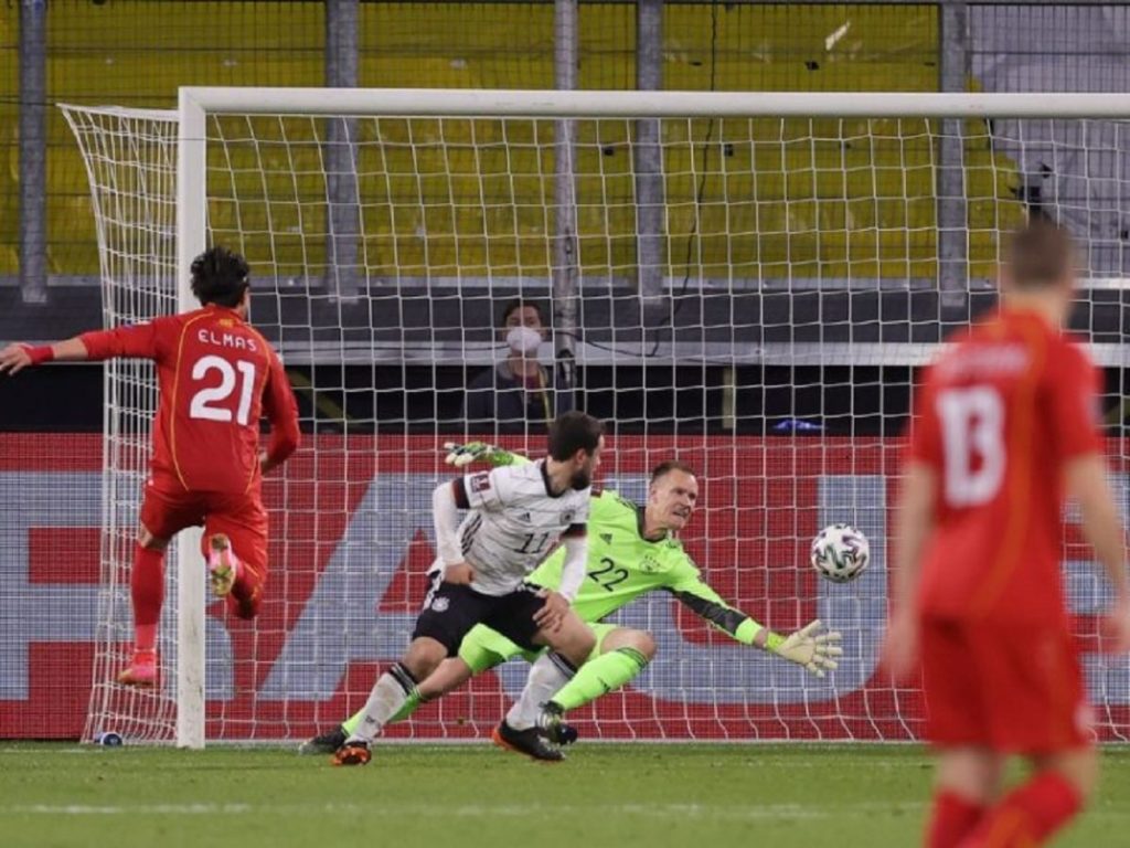 জে’ গ্রুপে গত ম্যাচে মেসিডোনিয়ার ৫-০ গোলের জয় ছিল লিচেনস্টাইনের বিপক্ষে। ডুইসবার্গের এই ম্যাচে জার্মানদের তেড়েফুড়ে ওঠার সুযোগ নিয়ে ইনজুরি টাইমে গোরান পানদেভ এগিয়ে নেন মেসিডোনিয়ানদের। বিরতির পর পেনাল্টি থেকে সমতা এনেছিলেন ইলকায় গুনদোগান।