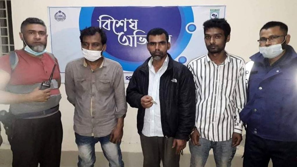 গ্রেফতারকৃতরা হলেন, আলমগীর হোসেন এবং তার সহযোগী আসাদুজ্জামান সবুজ ও মোস্তাক হোসেন। আলমগীর হোসেন পৌর এলাকার কালে প্রফেসর পাড়ার মৃত ওসমান গণির ছেলে। তিনি কুড়িগ্রাম জজ কোর্টের আইনজীবী ও সাবেক সহকারী পিপির দায়িত্বও পালন করছিল বলে জানায় পুলিশ। অপর আসামি আসাদুজ্জামান সবুজ কুড়িগ্রাম সদর উপজেলা পরিষদ এলাকার মৃত মাহবুব জামান তোতার ছেলে এবং মোস্তাক হোসেন ভূরুঙ্গামারী উপজেলার বাগভান্ডার এলাকার মৃত নাজমুল হকের ছেলে।