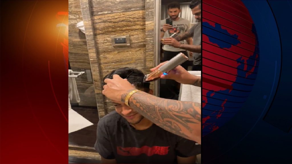 নিজের অফিশিয়াল ইনস্টাগ্রাম অ্যাকাউন্টে ১ দিন আগে সাকিব আল হাসান একটি ভিডিও পোস্ট করেছেন। যে ভিডিওতে দেখা যাচ্ছে, সাকিবের চুল কেটে দিচ্ছেন ওয়েস্ট ইন্ডিজের অলরাউন্ডার নারাইন। সাকিব বাধ্য ছেলের মতো চুপ করে বসে মুচকি হাসি দিচ্ছেন মাঝে মধ্যে। আর সুনীল খুবই দক্ষ নাপিতের মতোই নির্লিপ্ত মুখে ভীষণ মনোযোগের সঙ্গে নতুন ছাঁট দিচ্ছিলেন সাকিবের চুলে।