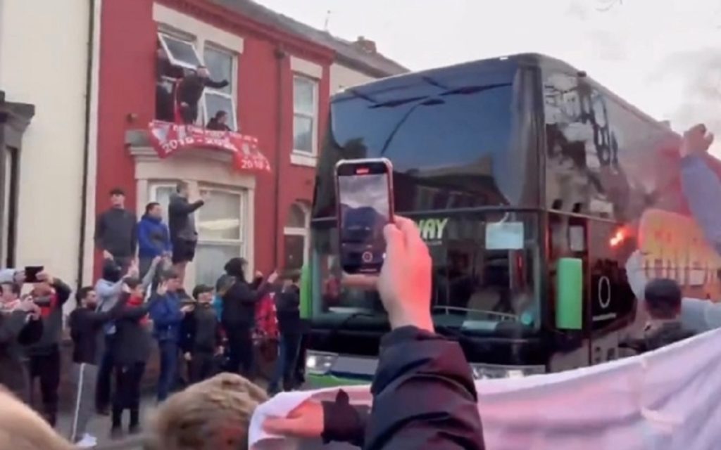 চ্যাম্পিয়্ন্স লিগের কোয়ার্টার ফাইনাল ম্যাচে অংশ নিতে অ্যানফিল্ডে লিভারপুল সমর্থকদের ক্ষোভের মুখে পড়ে রিয়াল মাদ্রিদের টিম বাস।
