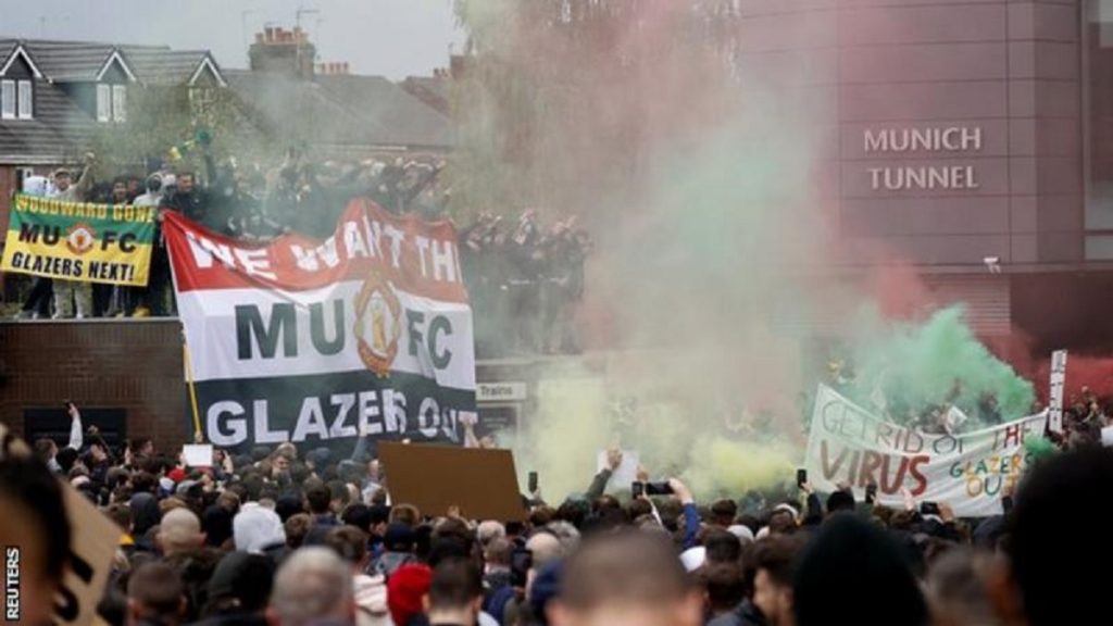 রোববার স্থানীয় সময় বিকেল সাড়ে চারটায় লিভারপুলকে আতিথ্য দেয়ার কথা ছিল রেড ডেভিলদের। তবে দুপুর একটার দিকে ওল্ড ট্রাফোর্ডে ঢুকে পড়ে প্রায় ২০০ সমর্থক। বিভিন্ন প্ল্যাকার্ড নিয়ে, আতশবাজি জ্বালিয়ে ক্লাবের মালিকপক্ষ গ্লেজার্স পরিবারের বিরুদ্ধে বিক্ষোভ করেন তারা।