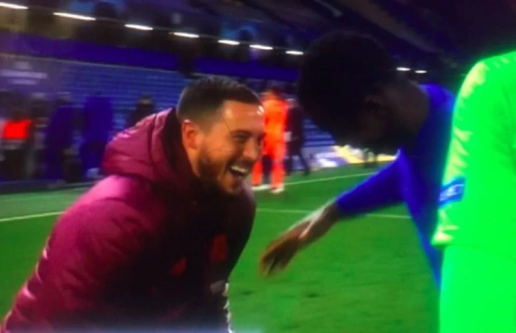 স্ট্যাম্পফোর্ড ব্রিজে চেলসির কাছে ২-০ গোলের হারে যখন বিমর্ষ রিয়াল মাদ্রিদের ফুটবলাররা তখন ভিন্ন এক ছবি ধরা পড়ে ক্যামেরায়। ফাইনালে ওঠার আনন্দ উদযাপন করা চেলসি ফুটবলারদের সাথে ছিল হ্যাজার্ড। সাবেক ক্লাবের সতীর্থদের সাথে ম্যাচের পরপরই হাসি-ঠাট্টা করতে দেখা যায় এই বেলজিয়ানকে।
