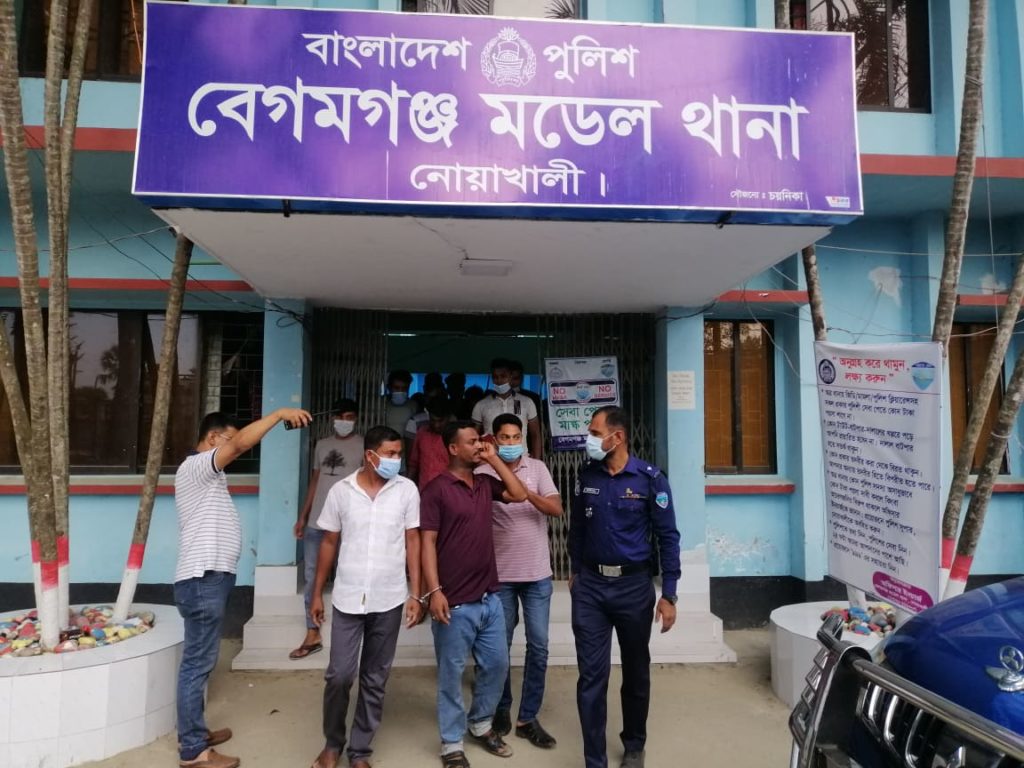 মঙ্গলবার (১৮ মে) সন্ধ্যা ৭টায় নির্বাহী ম্যাজিস্ট্রেট ও বেগমগঞ্জ উপজেলা কমিশনার (ভূমি) কামরুল হোসেন পরিচালিত ভ্রাম্যমাণ আদালতে এ দন্ডাদেশ দেয়। দন্ড প্রাপ্তরা হলো, আব্দুল করিম,মাহবুবুর রহমানকে ৭ দিনের বিনা শ্রম কারাদন্ড দেয়া হয়। মো.জাহেদ হোসেন রতন, মো.বাবলু,মো.তারেক,বেলাল হোসেন ৫ দিনের বিনা শ্রম কারাদন্ড দেওয়া হয়। এছাড়া মো.ইসমাইলকে ২ হাজার টাকা, মো ওমর ফারুককে ৫ হাজার টাকা অর্থদন্ড করে।