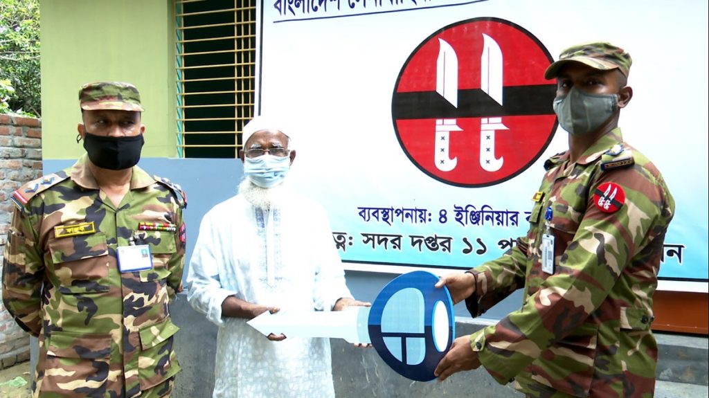 বাংলাদেশ সেনাবাহিনীর পক্ষ থেকে গৃহহীন মুক্তিযোদ্ধা অবসরপ্রাপ্ত সার্জেন্ট শাহজাহান আলীকে একটি বাড়ি উপহার দেওয়া হয়েছে।