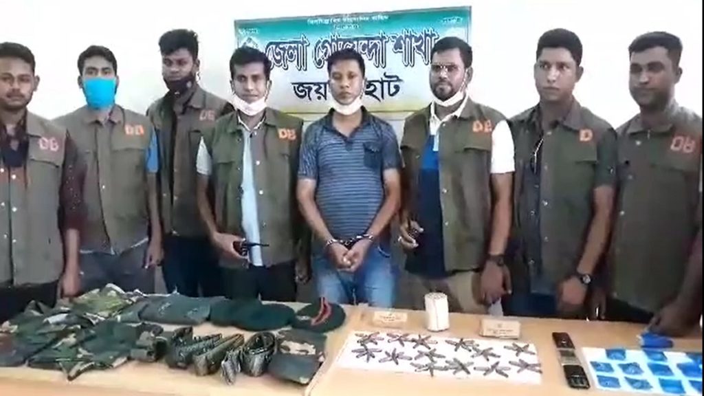 জয়পুরহাট শহরের আরামনগর এলাকা থেকে গুলি, ইয়াবা ও সেনাবাহিনীর পোশাকসহ সাবেক এক সেনাসদস্যকে গ্রেফতার করেছে গোয়েন্দা পুলিশ।