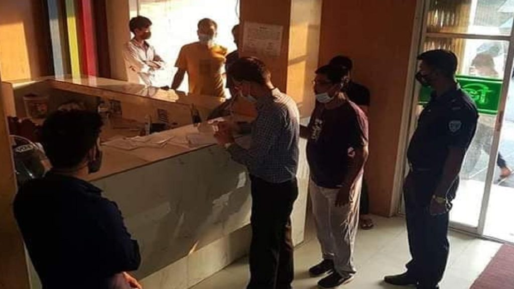 দুপুরে জেলা প্রশাসনের নির্বাহী ম্যাজিস্ট্রেট বিভিন্ন হোটেলে অভিযান চালান। এসময় তারা হোটেল প্রিন্সে কয়েকজন পর্যটককে অবস্থান করতে দেখেন।