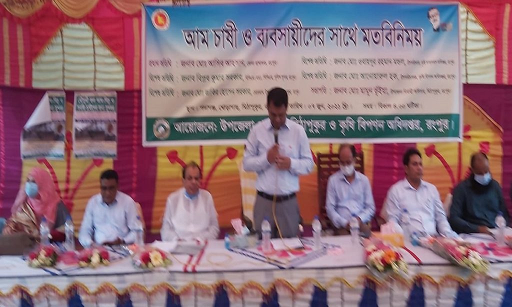 মিঠাপুকুর উপজেলা নির্বাহী কর্মকর্তা মোহাম্মদ মান্নান ভূঁইয়ার সভাপতিত্বে মতবিনিময় সভায় প্রধান অতিথি হিসেবে ছিলেন রংপুরের জেলা প্রশাসক হাসিব আহসান। মিঠাপুকুর উপজেলা চেয়ারম্যান জাকির হোসেন সরকার, কৃষি সম্প্রসারণ অধিদপ্তর রংপুর উপ-পরিচালক মোঃ ওবায়দুর রহমান মণ্ডল, কৃষি বিপণন অধিদপ্তরের উপ-পরিচালক মোঃ আনোয়ারুল হক প্রমুখ।